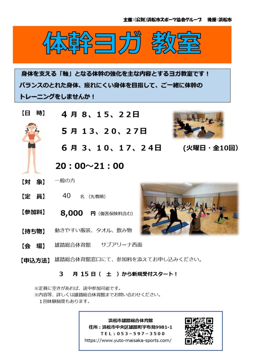 体の軸である「体幹」を意識した動作を多く取り入れたヨガ教室です! 男性の方にもおススメの教室です!