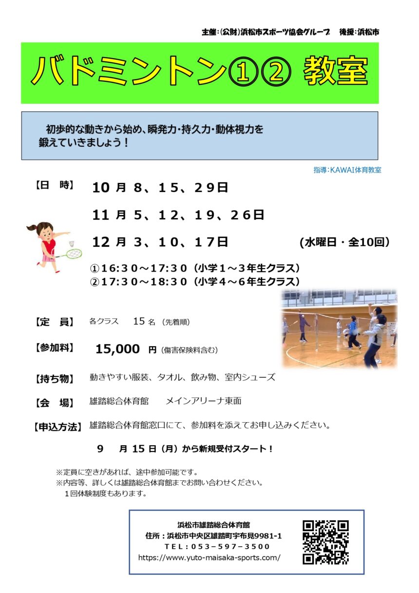 近年は男女ともに日本選手の世界大会での活躍が話題になっています! バドミントンの基礎を楽しく学ぼう! ①が小学1~3年生 ②が小学4~6年生を対象としたクラスとなります。