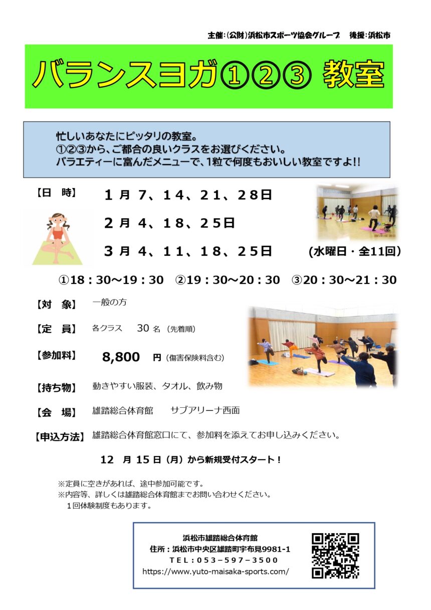 ヨガの呼吸法を意識して心と体のバランスを身につけましょう! リズム体操を取り入れてみたり、一粒で何度もおいしい教室です! ①②③のクラスは、開催時間以外の違いはありません。 お申し込み時に①②③ご都合の良いクラスをお選びください。