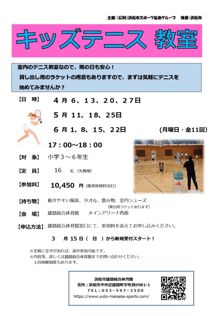 - 運動のできる服装、汗拭きタオル、飲み物、室内シューズ